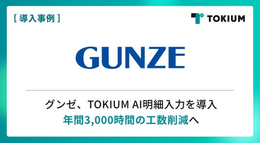 経理AIエージェントを提供する株式会社TOKIUM(本社:東京都中央区、代表取締役:黒崎 賢一、以下「TOKIUM」)は、グンゼ株式会社(本社:大阪市北区、代表取締役社長:佐口 敏康、以下「グンゼ」)がTOKIUM AI明細入力を導入したことをお知らせします。