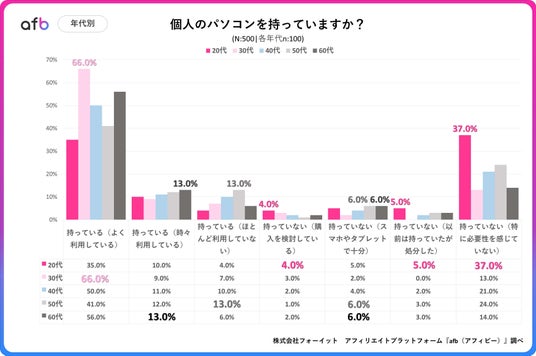PC保有率、世代間でくっきり差。30代は8割超え、20代は非保有が多数派