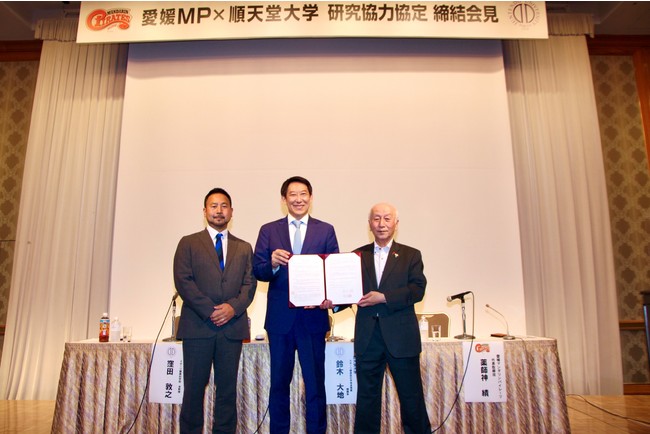 順天堂大学(東京都文京区、学長:新井 一)と愛媛マンダリンパイレーツ(愛媛県民球団株式会社、本社:愛媛県松山市、代表取締役:薬師神 績)は、選手の投球障害予防と競技力向上のためのコンディショニング方法の確立を目指し、独立リーグとして初めて研究協力協定を締結しました。 ₍※₎球団調べ