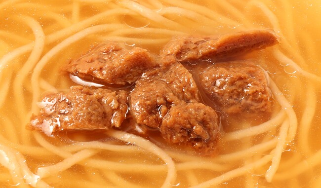 特徴:カムット小麦由来のコシに、酵素技術でモチモチとした食感を加えた食べ応えのある麺を実現
