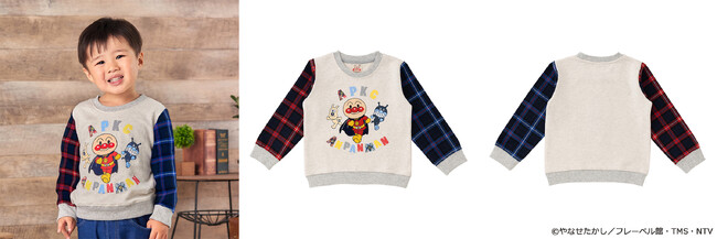 アンパンマンアップリケ袖チェックトレーナー