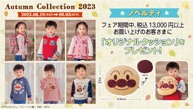 また、商品の発売にあわせて、店頭およびバンダイナムコグループ公式通販サイト「プレミアムバンダイ内アンパンマンキッズコレクションオンラインショップ」( https://p-bandai.jp/anpanman-kids/ )にて対象商品を13,000円(税込)以上お買い上げのお客様に「オリジナルクッション」をプレゼントするキャンペーンを実施いたします。
