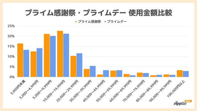 プライムデーでの使用金額と比較すると、プライム感謝祭の方が少ない傾向。
