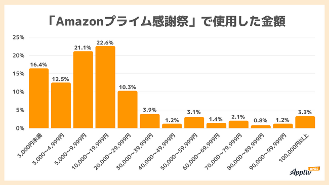 プライム感謝祭での使用金額の最多は「10,000~19,999円」22.6%。