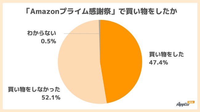 プライム感謝祭の開催を知っていた人の内、期間中に買い物をしたのは47.4%。
