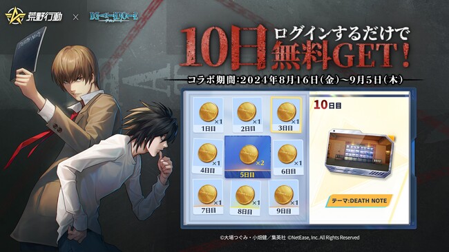 さらに、10日間ログインすると、金枠アイテム「テーマ:DEATH NOTE」がもらえます!