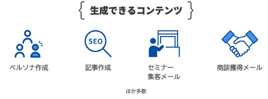 - セールスレターなど、これまで実施したことがないコンテンツも専用のテンプレートを使うことで効果的に生成することができます。