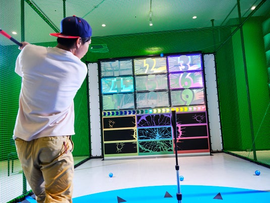 バットでボールを打ち、ターゲット(穴)めがけて高得点を狙おう!