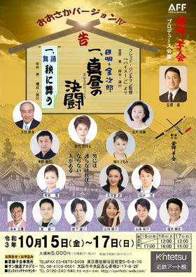 若獅子会プロデュース公演「目明し金次郎 真昼の決闘」「舞踊 秋に舞う」が2021年10月15日 (金) ~ 10月17日 (日)に近鉄アート館(大阪府大阪市)にて上演されます。チケットはカンフェティ(運営:ロングランプランニング株式会社、東京都新宿区、代表取締役:榑松 大剛)にて発売中です。