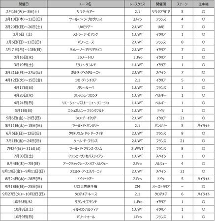 ※2022年1月19日時点で放送が決定している大会のみを掲載しています。追加・変更等は随時J SPORTSサイクルロードレース特集サイトにて発表します。