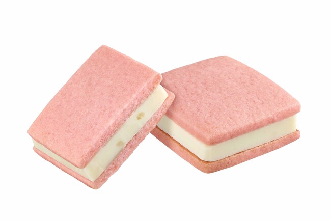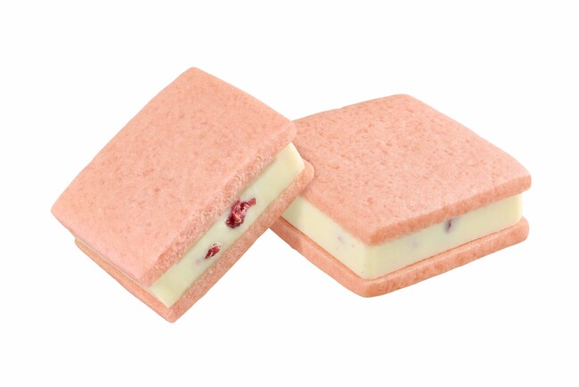 バラのペーストを練りこんだ華やかな香りのサブレで、甘酸っぱいドライラズベリー入りのホワイトチョコレートガナッシュをサンドしました。