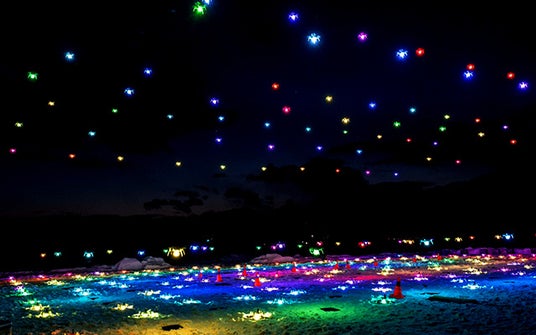 NDSは北海道・上士幌町の本社にドローンを保有しており、道内におけるドローンショー開催の大きな問題である輸送コストを抑えることが可能です。STVのコンテンツプロデュース力と信頼性にNDSのドローン制御技術、演出ノウハウ、コスト競争力を融合させることで、北海道の皆様に、安全かつ高品質なドローンショーを提供いたします。