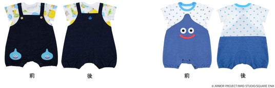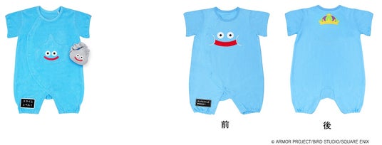 左) 半袖フィットオール スライム メタルスライムのラトル付き(50-60/60-70/70-80cm) 各3,999円(税込)