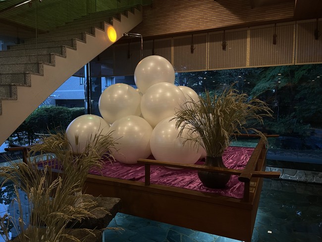 お月見気分をこれでもかというほど漂わせる巨大な「お団子オブジェ」がロビーに登場!