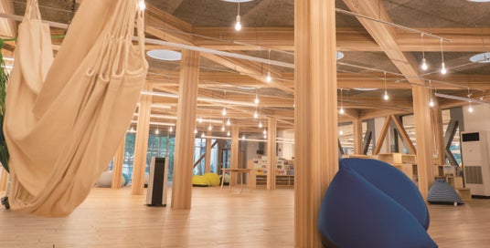 瀬戸SOLAN小学校のラーニングコモンズ。校舎は瀬戸市立本山中学校の跡地を利用。2022年度のグッドデザイン賞を受賞。