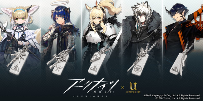 大人のための本格的なキャラクタージュエリーを扱うユートレジャー(東京都豊島区:代表取締役:伊藤 崇史)は、アプリゲーム「アークナイツ」とコラボしたプレートネックレス5種類を、7月23日(土)~8月16日(火)の期間限定で予約受付を行ないます。このたびの新作は、スズラン、モスティマ、ニアール、シルバーアッシュ、エンカク、それぞれの武器をモチーフにしたチャームが揺れるデザインです。プレート部分には、所属陣営のエンブレムを刻みました。ユートレジャーコンセプトストア池袋、ユートレジャーオンラインショップにて取り扱います。