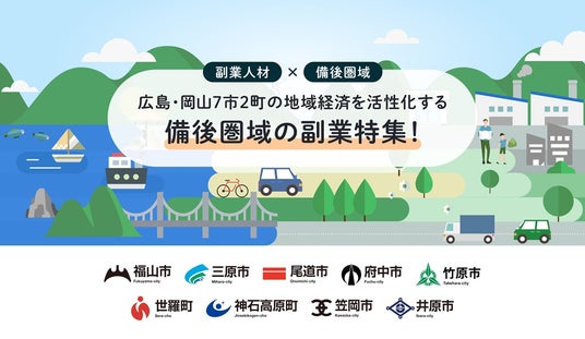 「はたらいて、笑おう。」をビジョンに掲げるパーソルグループのパーソルイノベーション株式会社 lotsful Company(本社:東京都港区、lotsful Company代表:田中 みどり)が運営する副業人材マッチングサービス『lotsful(ロッツフル)』( https://lotsful.jp/ )は、昨年度に引き続き、広島県福山市と連携し、備後圏域(広島県・岡山県の7市2町)の企業を支援する副業人材の募集を開始いたします。『広島・岡山7市2町の地域経済を活性化する・備後圏域の副業特集!( https://lotsful.jp/specials/bingo2 )』と題した特設ページにて3社の副業プロジェクト3件を、本日より公開したことをお知らせします。