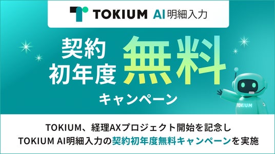 経理AIエージェントを提供する株式会社TOKIUM(本社:東京都中央区、代表取締役:黒崎賢一、以下「TOKIUM」)は、2026年4月1日(水)より、経理AXプロジェクトの始動を記念したキャンペーンを実施します。キャンペーン期間中にTOKIUMインボイスとあわせてお申し込みいただいた新規のお客様を対象として、契約初年度に限りTOKIUM AI明細入力の利用料が無料となります。
