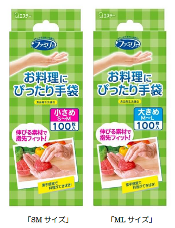 エステー株式会社は、料理の際に指先にフィットして素手感覚で使える極薄手タイプの使いきり手袋「ファミリー お料理にぴったり手袋」をこれまでのフリーサイズ1種から、小さめの「SMサイズ」と大きめの「MLサイズ」の2種類をラインナップし、9月27日から全国のスーパー、ドラッグストア、ホームセンターなどで新発売します。