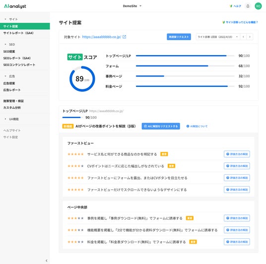 ■『AIアナリスト』、生成AIを用いたサイト改善提案の解説機能を提供開始