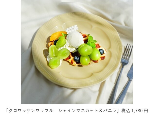 旬のシャインマスカットをふんだんに使用した「クロワッサンワッフル シャインマスカット&バニラ」