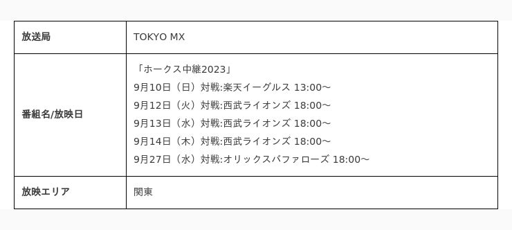■TOKYO MX「ホークス中継2023」の詳細はこちら