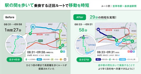 ~迂回のバリエーションが増え、より早く目的地に到着できるルートや歩きが少ないルートを提供可能に~