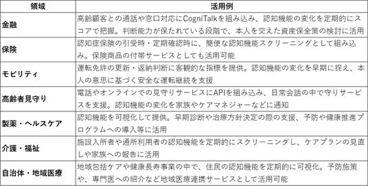 電話による高齢者見守り、金融機関の窓口・コールセンター、介護施設でのスクリーニング、AIによる高齢者との会話サービスなど、様々なシーンに活用いただけます。