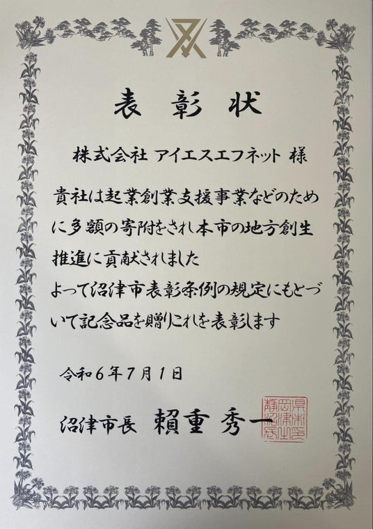 株式会社アイエスエフネット(本社:東京都港区/代表取締役:渡邉幸義、以下アイエスエフネット)は、2024年7月1日、沼津市の市政発展に寄与したとして表彰されたことをお知らせいたします。