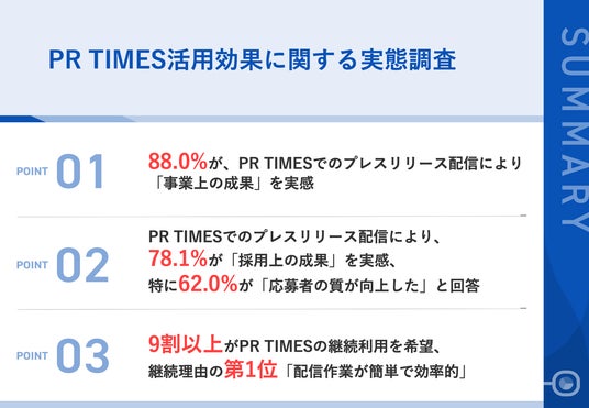 - 01|88.0%が、PR TIMESでのプレスリリース配信により「事業上の成果」を実感