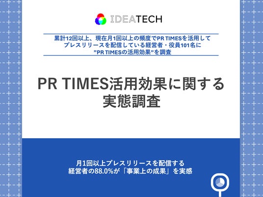 ワンストップでリサーチデータマーケティングを実現する「リサピー(R)️」(https://ideatech.jp/service/research-pr )を運営する株式会社IDEATECH(本社:東京都港区、代表取締役社長:石川友夫、以下:IDEATECH)は、累計12回以上かつ、現在月1回以上の頻度でPR TIMESを活用してプレスリリースを配信している経営者・役員101名を対象に、PR TIMES活用効果に関する実態調査を実施しましたので、お知らせいたします。