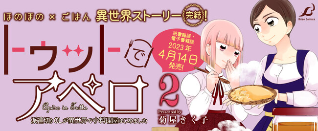 キルタイムコミュニケーション(東京都中央区)は、ブリーゼコミックス『トゥットでアペロ~派遣切りOLが異世界で小料理屋はじめました~ 2』を4月14日に発売いたします。