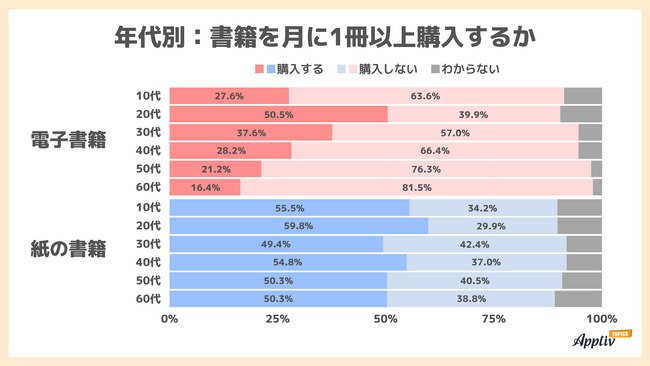 ナイル株式会社(本社:東京都品川区、 代表取締役社長:高橋飛翔、 以下ナイル)が運営する「Appliv TOPICS」にて、15~69歳男女1,967人を対象に、2023年10月12日~10月19日の期間、書籍の購入に関する調査を実施しました。