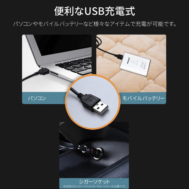 USBポートやモバイルバッテリーがあれば使えるので、車内やキャンプ、お花見などでもご使用いただけます♪