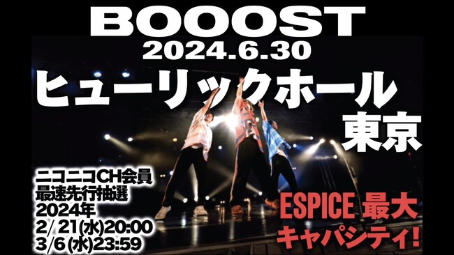 『BOOOST』と銘打ったこのライブのチケットや、開催日時の詳細は以下の通りだ。