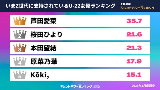 『タレントパワーランキング』では、タレントパワーランキングに登録されている22歳以下の女優について、Z世代(10代~20代前半の男女)が回答した結果を調査。