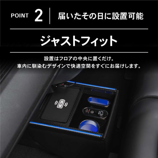 設置方法は、フロアの中央に置くだけ。どなたでも簡単に設置でき、すぐに車内に馴染み、心地よいドライブ空間を提供します。