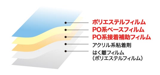 当社の耐久ラインテープシリーズ同様、独自の「3層フィルム」構造により優れた耐久性を実現しており、破れやはがれが少ないのも特長です。