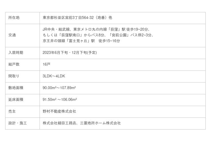 <「(仮称)杉並宮前プロジェクト」 物件概要>