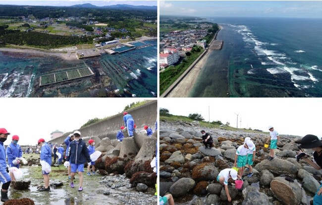 写真下:地域の方々による磯掃除の様子