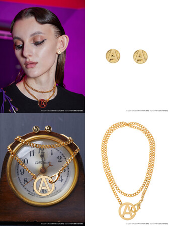 上品な艶めきを放つゴールドの1色展開。Aマークは片方が取り外し可能で、二連にしてチョーカーとしても使えます。普段使いからオケージョンシーンまで定番のジュエリーとして活躍します。アバッキオピアスとのセットコーデもおすすめです。