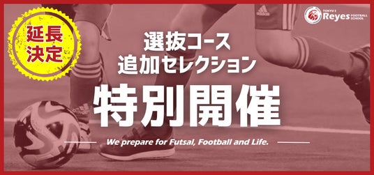 この度、東急Sレイエス フットボールスクール 池袋にて小学3~6年生を対象とした『選抜コース追加セレクション』開催の延長が決定いたしました。
