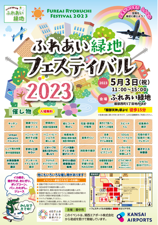 豊中市は、5月3日(祝)にふれあい緑地(服部西町)で「ふれあい緑地フェスティバル2023」を開催します。