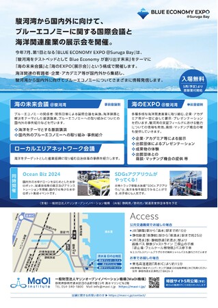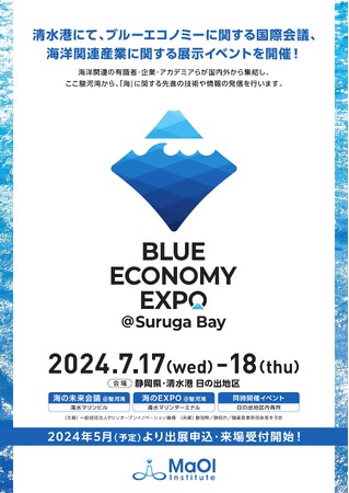 一般財団法人マリンオープンイノベーション機構(所在:静岡市清水区日の出町、代表理事:松永是)は、7月17日(水)~18日(木)に、「BLUE ECONOMY EXPO@Suruga Bay」と題し、海洋経済(ブルエコノミー)に関する「海の未来会議@駿河湾」や、多種多様な海洋関連の企業が一堂に集まる展示会「海のEXPO@駿河湾」等を開催します。