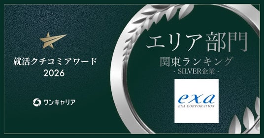 株式会社エクサ(本社:神奈川県横浜市西区みなとみらい、代表取締役 社長執行役員 林 勇太、以下エクサ)は、就活支援サービス「ワンキャリア」を運営する株式会社ワンキャリア(本社:東京都渋谷区、代表取締役社長 執行役員CEO:宮下 尚之、以下「ワンキャリア」)が主催する「ワンキャリア 就活クチコミアワード2026」のエリア部門 関東ランキングにおいてシルバー賞を獲得しました。