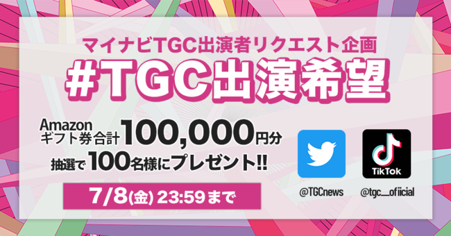 受付期間は2022年7月8日(金)まで。詳細はTGC公式Twitter(@TGCnews)TGC公式TikTok(@tgc__official)にて発表します!
