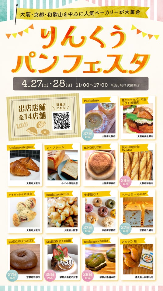 4月27日(土)・28日(日)2日間限定 広場1周で2府2県関西パン屋巡り!地元大阪の人気パンも登場