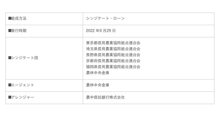 農林中央金庫(代表理事理事長:奥和登、以下「農林中金」)は、JAバンク会員である都道府県信用農業協同組合連合会5団体と協調し、野村不動産ホールディングス株式会社(代表取締役社長:沓掛英二、以下「野村不動産HD」)との間でサステナビリティ・リンク・ローン(以下「SLL」)によるシンジケート・ローン契約(以下「本件シ・ローン」)を締結いたしました。本件シ・ローンは、農中信託銀行株式会社(代表取締役社長:高橋茂充、以下「農中信託」)がアレンジャーを務め、JAバンク会員にてシンジケート団を構成するシンジケート方式のSLLです。農林中金による野村不動産HDへのSLL対応は、2022年3月の初回実行以降、本件が3回目です。