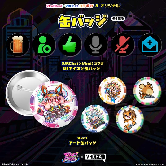 ◇缶バッジ「アクキーだけじゃなくて缶バッジも欲しい!」という声にお応えして、VRChatのUIアイコンや、書き下ろしのVRCat・VRRatに加え、Vketちゃん1号たちの缶バッジも全11種類用意しました!