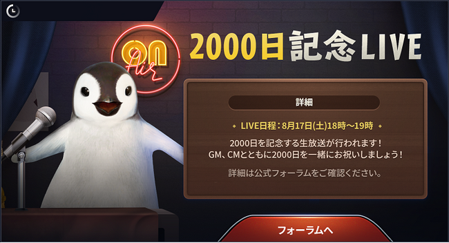 2024年8月17日(土)に、記念すべき2,000日を祝し、「テルミアンスクショコンテスト」や「2,000日祭りミニゲーム」、「リアルタイム抽選会」など、冒険者様と共に楽しめるコンテンツを生放送でお届けします。ぜひご視聴ください。